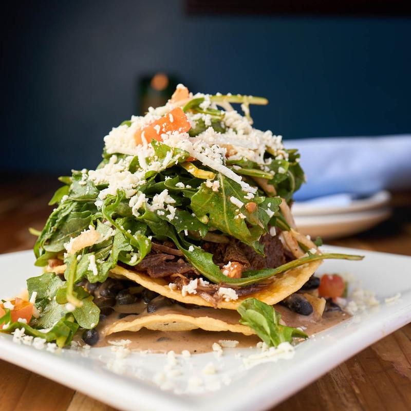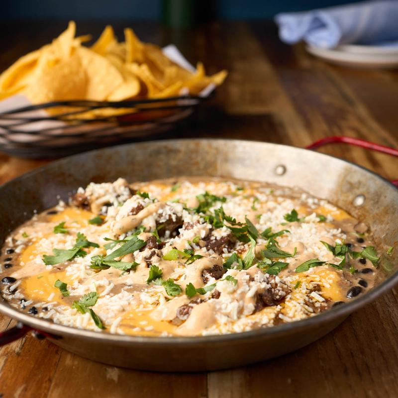 Piedmontese short rib, black beans, chorizo chili queso, chipotle crema, cilantro, cotija, tortilla chips.