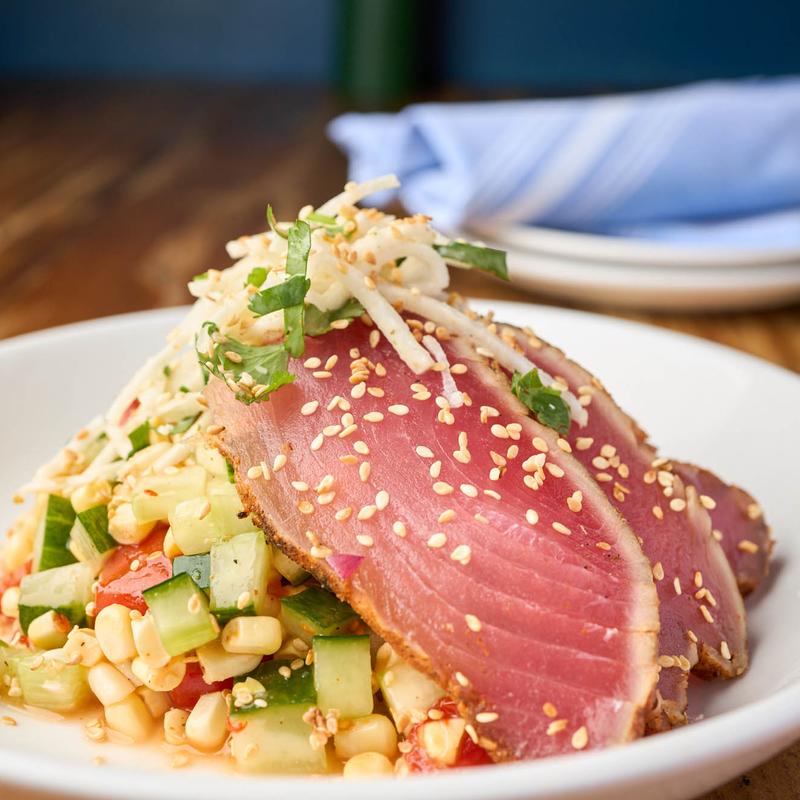 Jicama, avocado, corn, cucumbers, tomatoes, sesame, cilantro, lime chili vinaigrette.